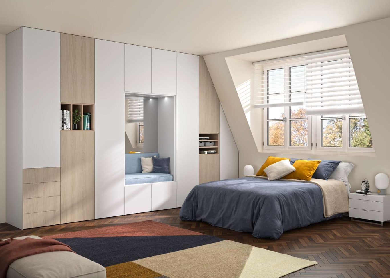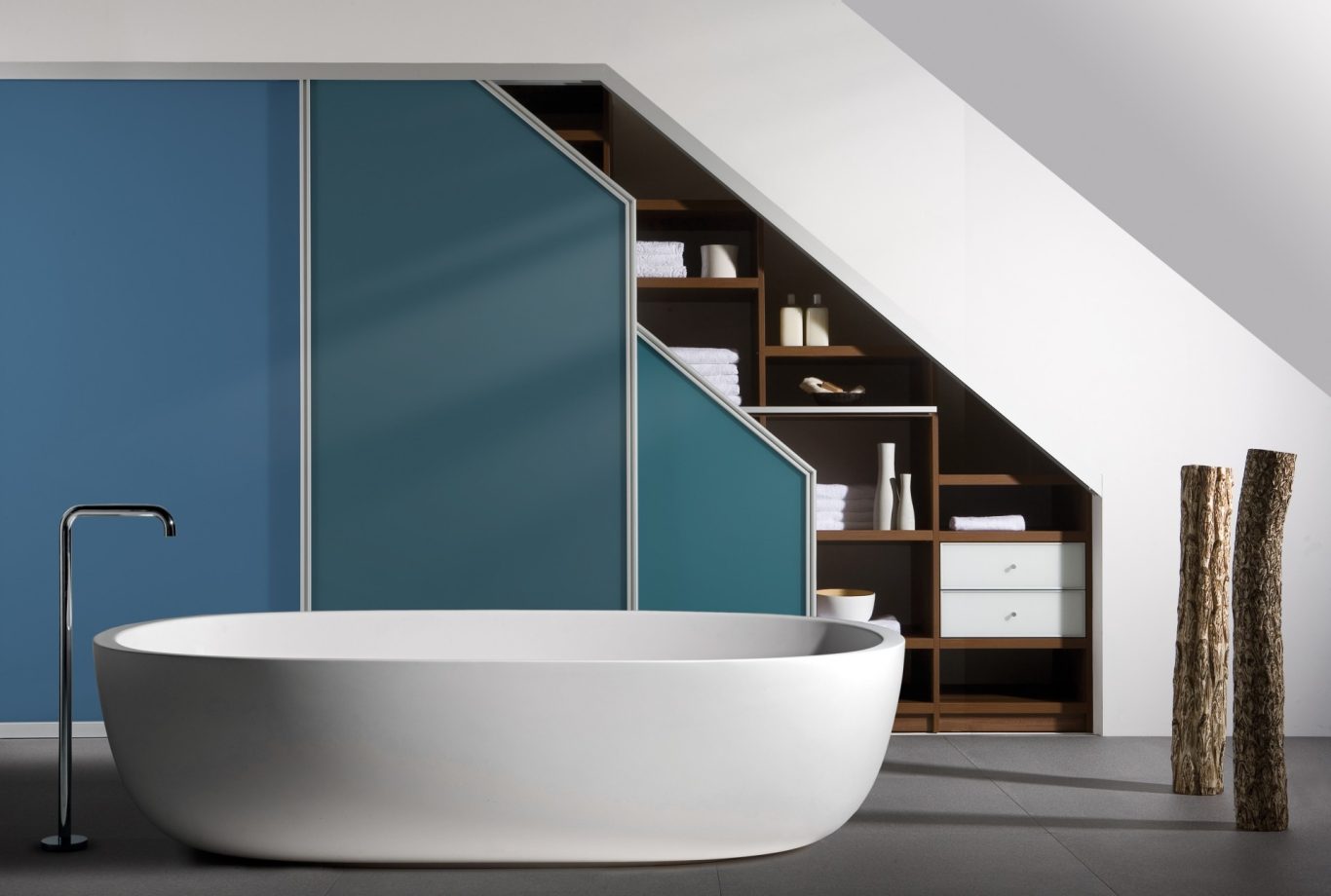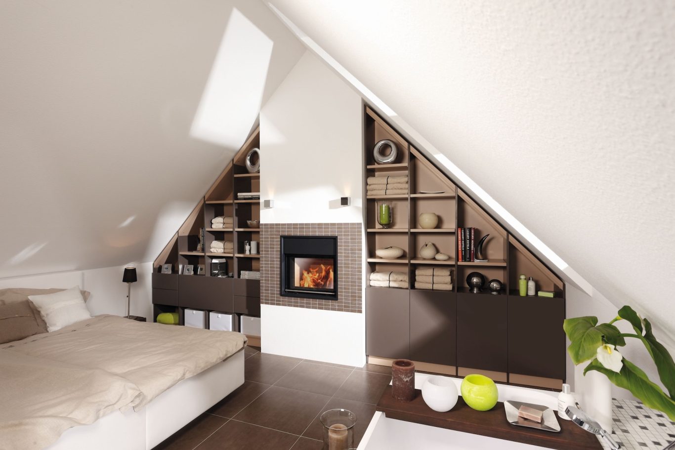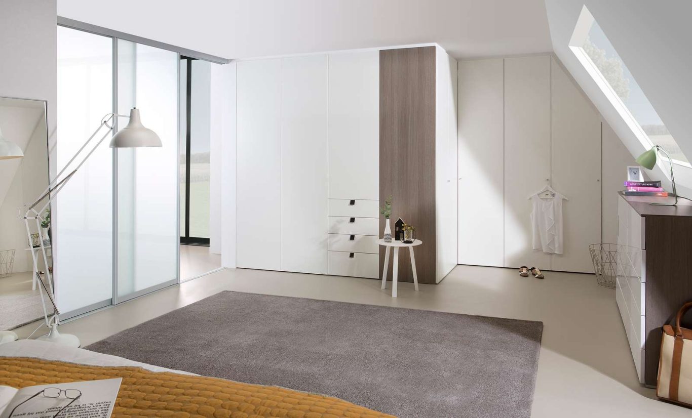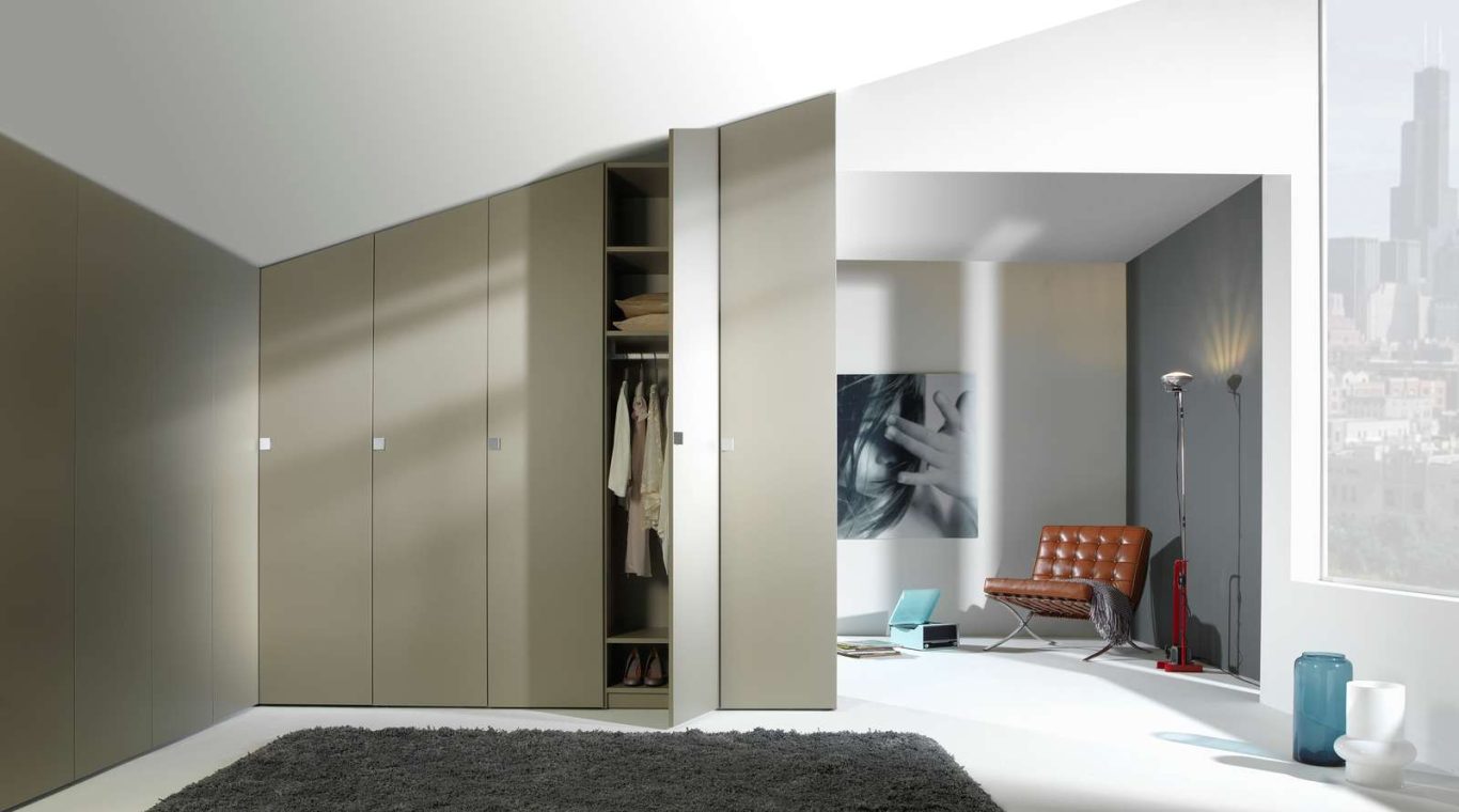 Ob nach links, rechts oder nach hinten abgeschrägt sind Möbel unter Dachschrägen immer etwas besonderes. Nahezu fast jedes Möbelstück kann in eine Dachschräge geplant und eingebaut werden. Dabei ist es egal ob offen, mit Drehtüren oder mit Schiebetüren. Die Möglichkeiten der individuellen Gestaltung der Ausstattung unterscheidet sich hierbei kaum von geradlinigen Schränken.